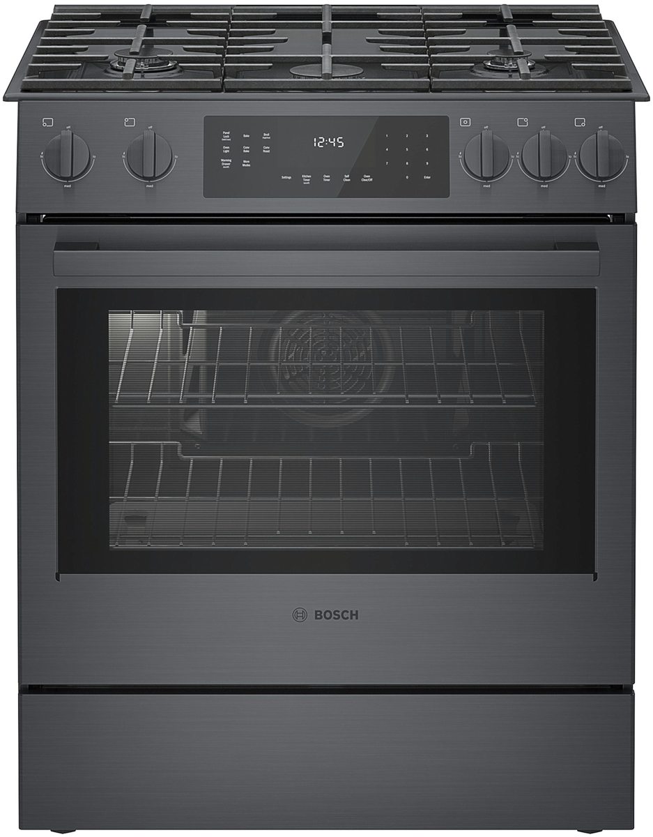 Black stainless steel helps guard against scratches and fingerprints to maintain their bold look. The Bosch slide-in range fits in any freestanding range cutout. The warming drawer keeps everything you cook warm and ready to serve.Read More