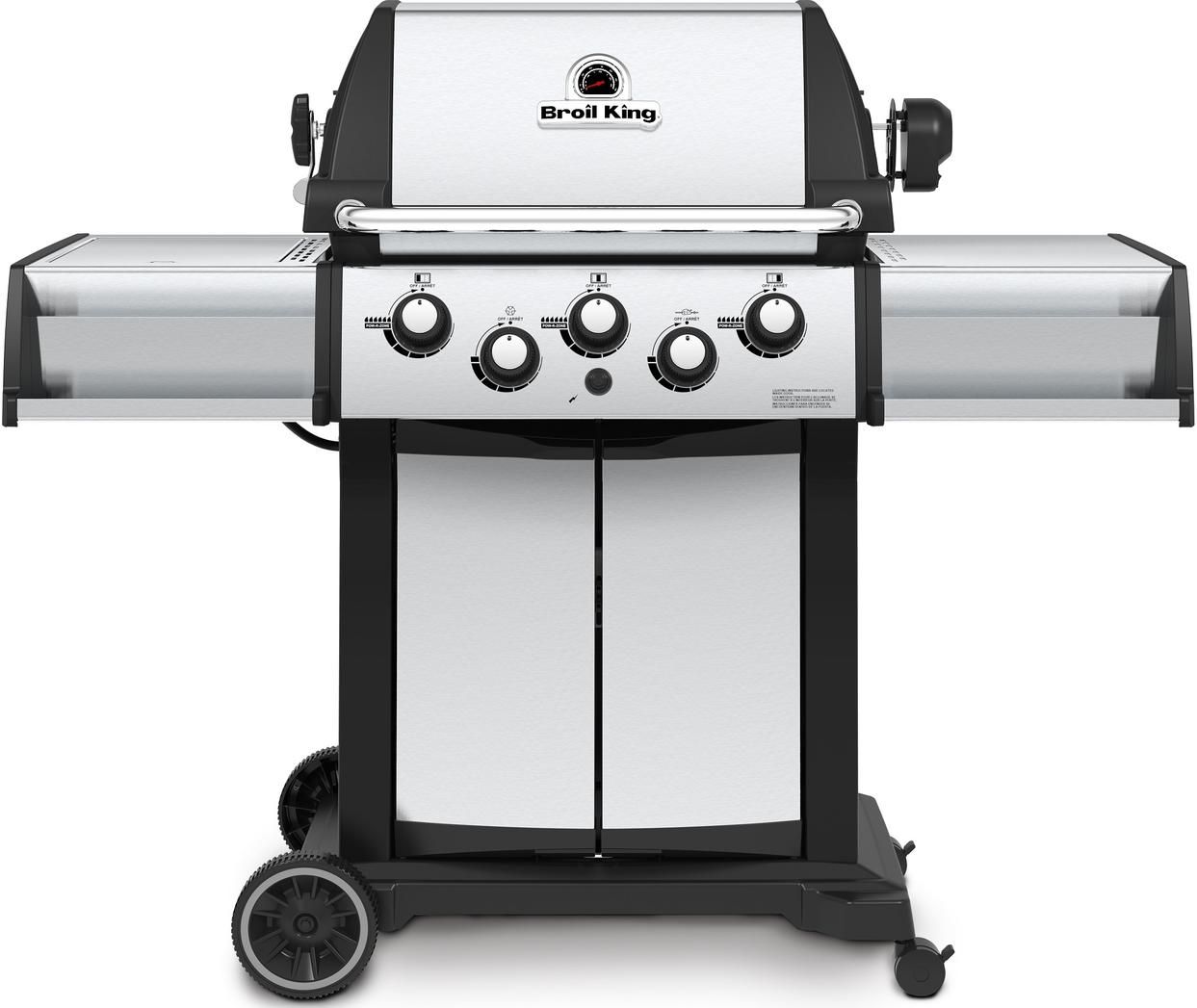 The Signet™ 390 features 635 sq. in. total cooking space including a porcelain coated warming rack, reversible heavy-duty cast iron cooking grids, stainless steel Flav-R-Wave™ cooking system, 3 stainless steel Dual-Tube™ burners, and stainless steel drop-down side shelves and enclosed cabinet base.Read More