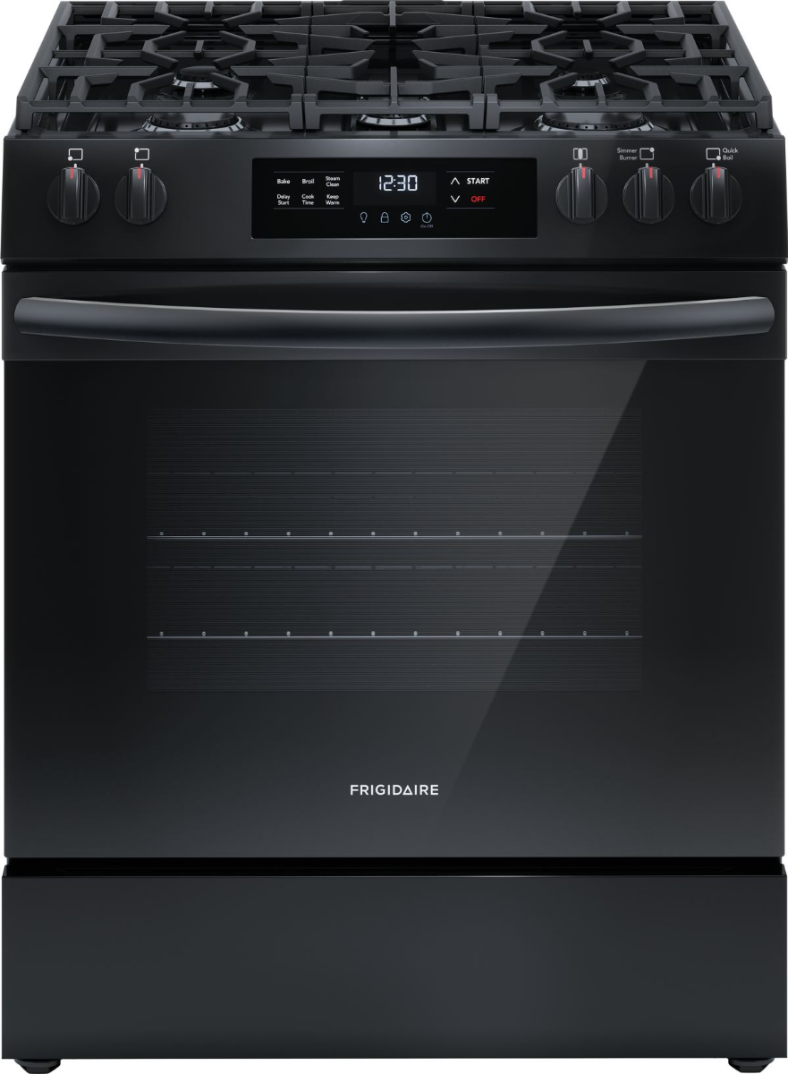 The Frigidaire 30'' Front Control Freestanding Gas Range with Quick Boil allows you to experience faster boil times with the 18,000 BTU Quick Boil burner. Plus, our flexible five burner cooktop was designed to fit all your cooking needs. For easier cleanup, our Steam Clean cycle provides a quick clean.Read More