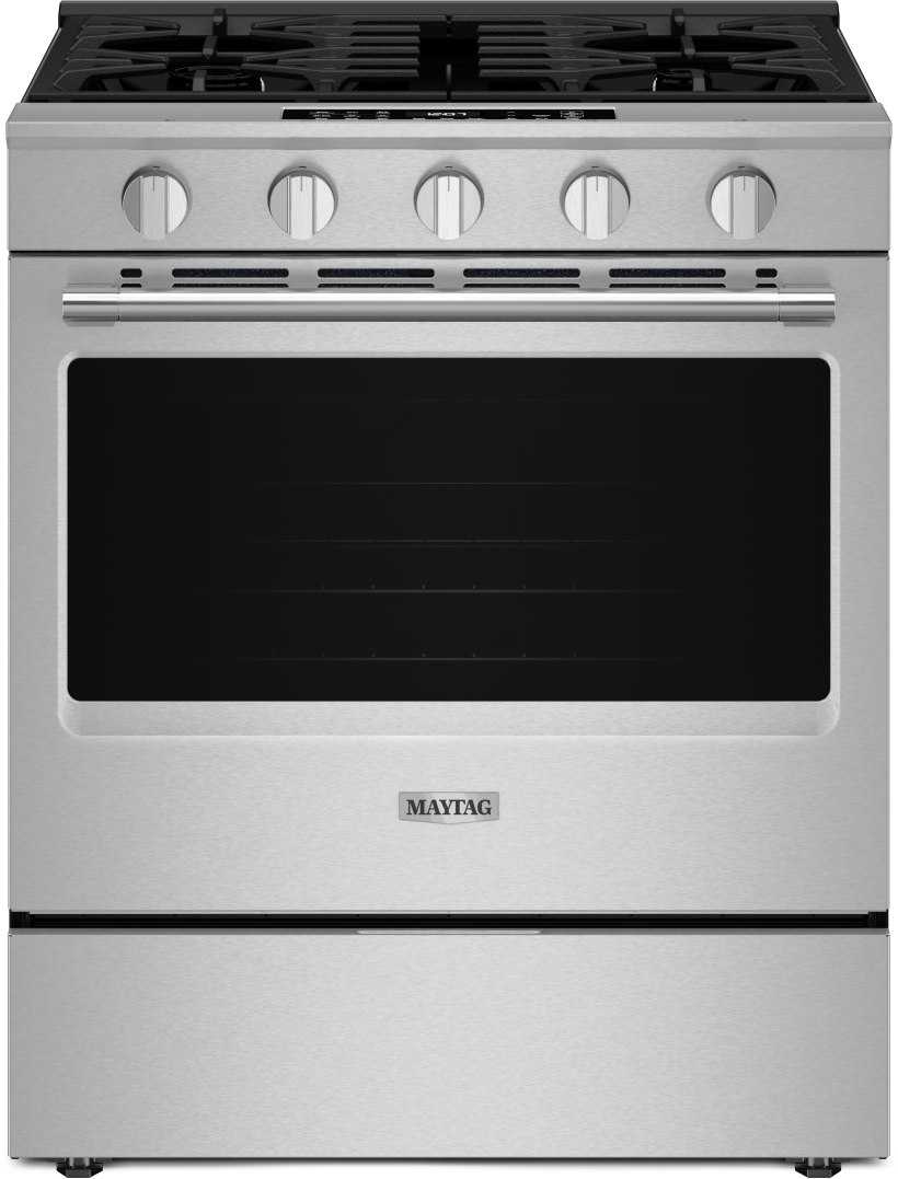 The dishwasher-safe cast-iron grates and sturdy door hinges on this Maytag® gas range are built for dependability, while the fingerprint resistant stainless finish helps make cleaning easy.