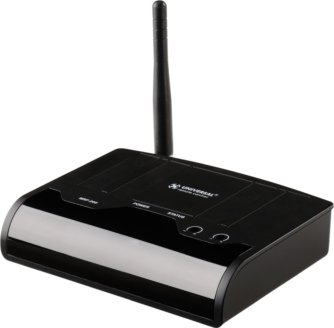 MRF-260 base station receives RF (Radio Frequency) signals from any remote in URC's Complete Control® line of Universal Remotes, converts the RF signal into IR (Infrared) commands and delivers the commands to the integrated A/V components. It uses Narrow Band RF to assure the continuity of the commands and minimize the effect of RFI (Radio Frequency Interference) that often occurs in highly-populated markets. Required for use with URC's Complete Control line up of universal remotes.
